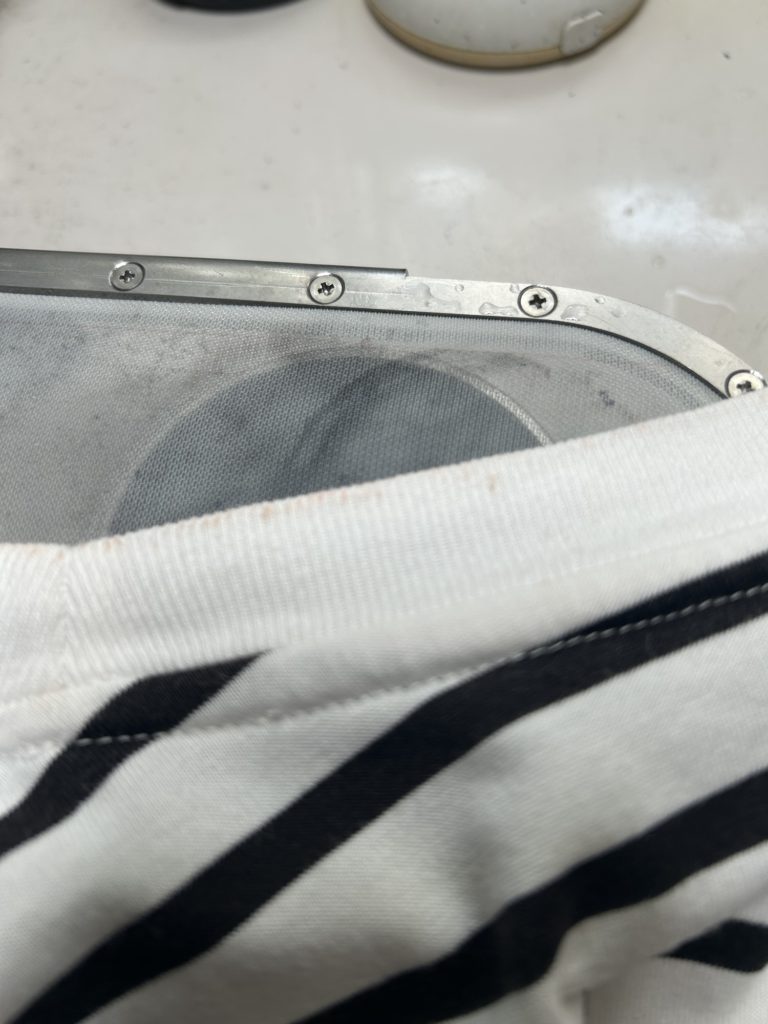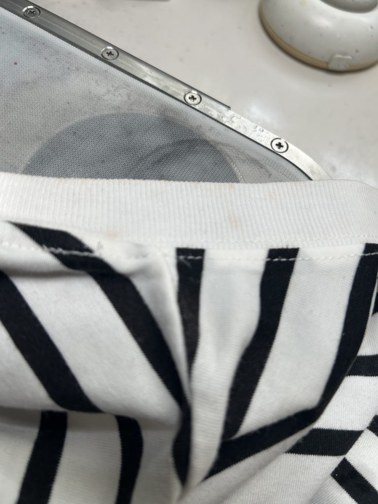 先日、お客様から「白いTシャツに毛染め液がついてしまった!」とご相談がありました。家庭での洗濯では全く落ちなかったとのこと。シミがついてから1週間ほど経過しており、繊維の奥に染み込んでしまった可能性が高い状態でした。