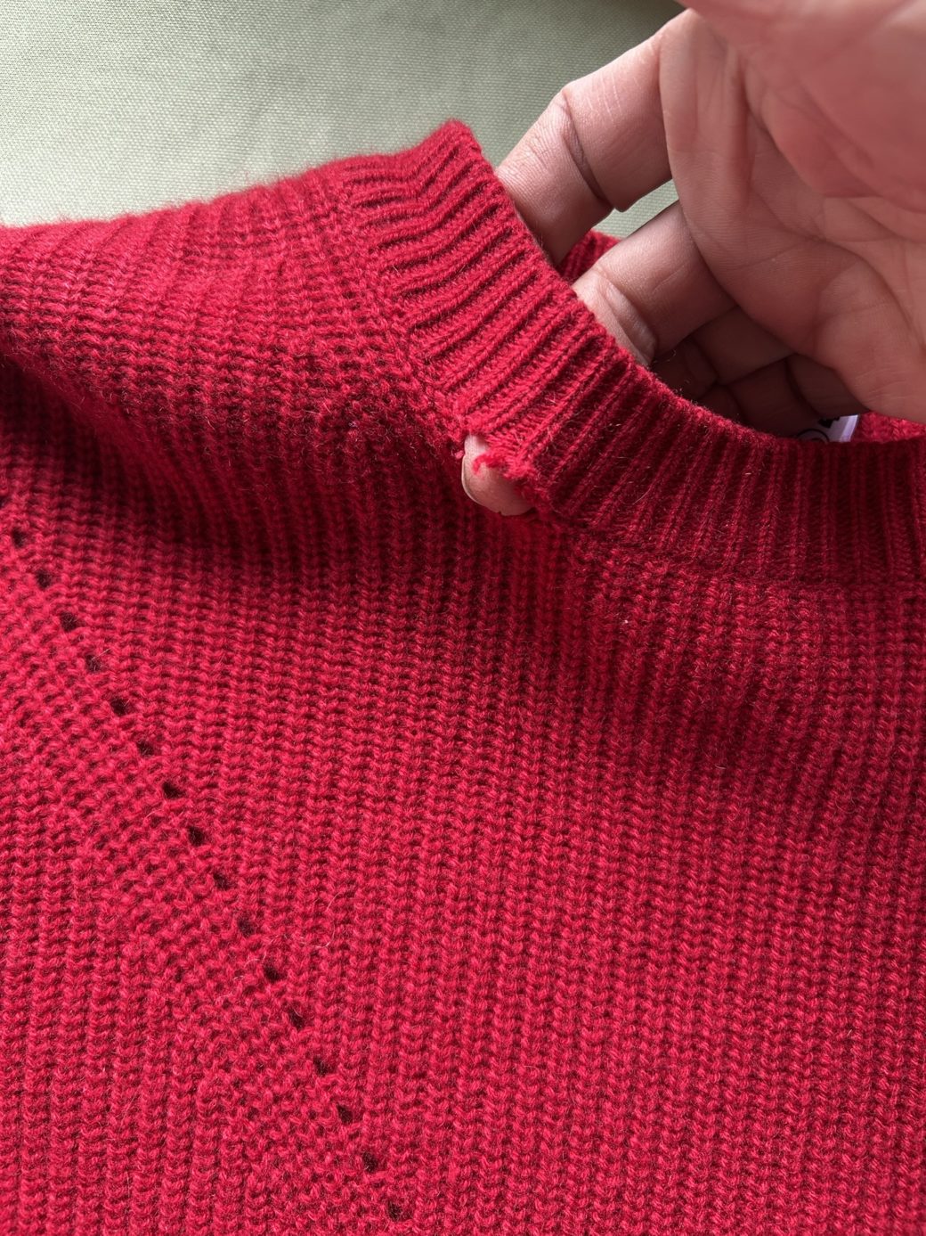 今回ご依頼いただいたのは、そんな典型的な襟ほつれのニット。